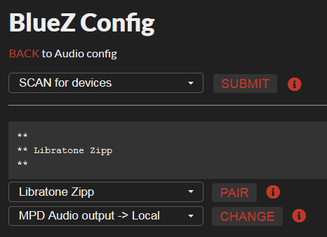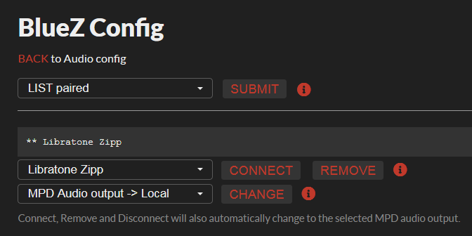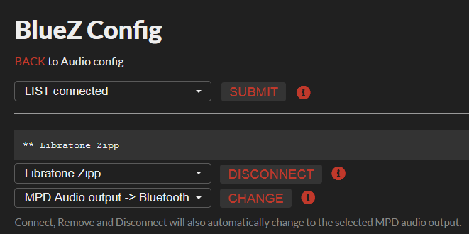 Nach unten Scrollen > Save anklicken und mit "Apply changes now (restart Mopidyy)" ein Reboot durchführen.
