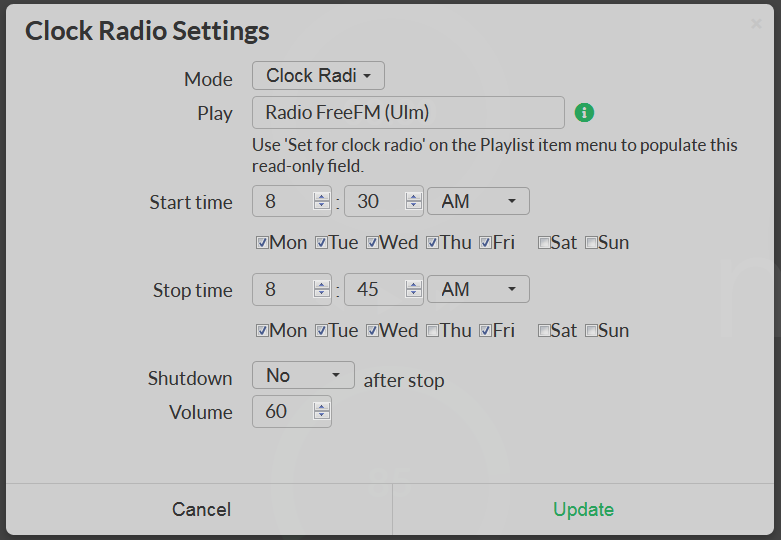 Wenn nach dem Start sofort Musik abgespielt werden soll, muss einfach die URI in (Settings