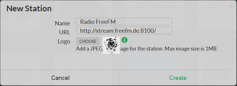 Wichtig die blau hinterlegen Einträge müssen natürlich für den jeweiligen Sender angepasst werden!station : 'http://stream.freefm.de:8100/'name : 'FreeFM'