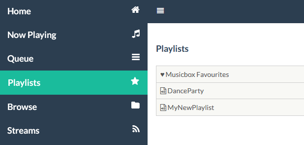 Streams und die Playliste 'Musicbox Favourites' hängen direkt zusammen.