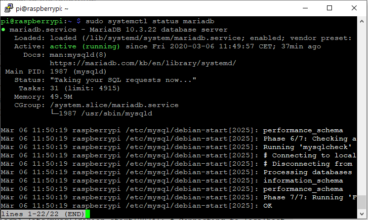 Beim ersten Lauf wird dieses Passwort für den Benutzer root in die MySQl-Datenbank einigetragen