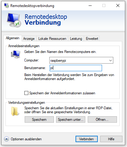 Passwort: raspberry (durch das englische Tastaturlayout: raspberrz)