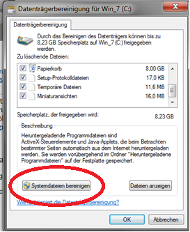 -> „Systemdateien bereinigen“ anklicken und wenn es dann fertig ist einfach alles markieren und mit OK die Bereinigung durchführen.