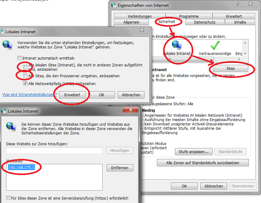 -> Register Sicherheit -> lokales Internet -> Sites