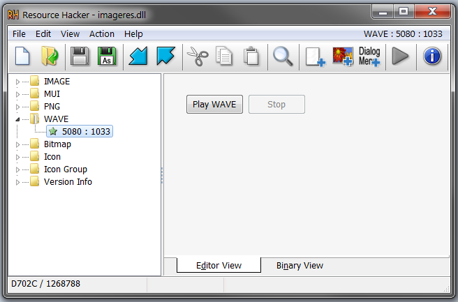 - Mit der rechten Maustaste auf 5080 : 1133 klicken und Replace Resource ... klicken