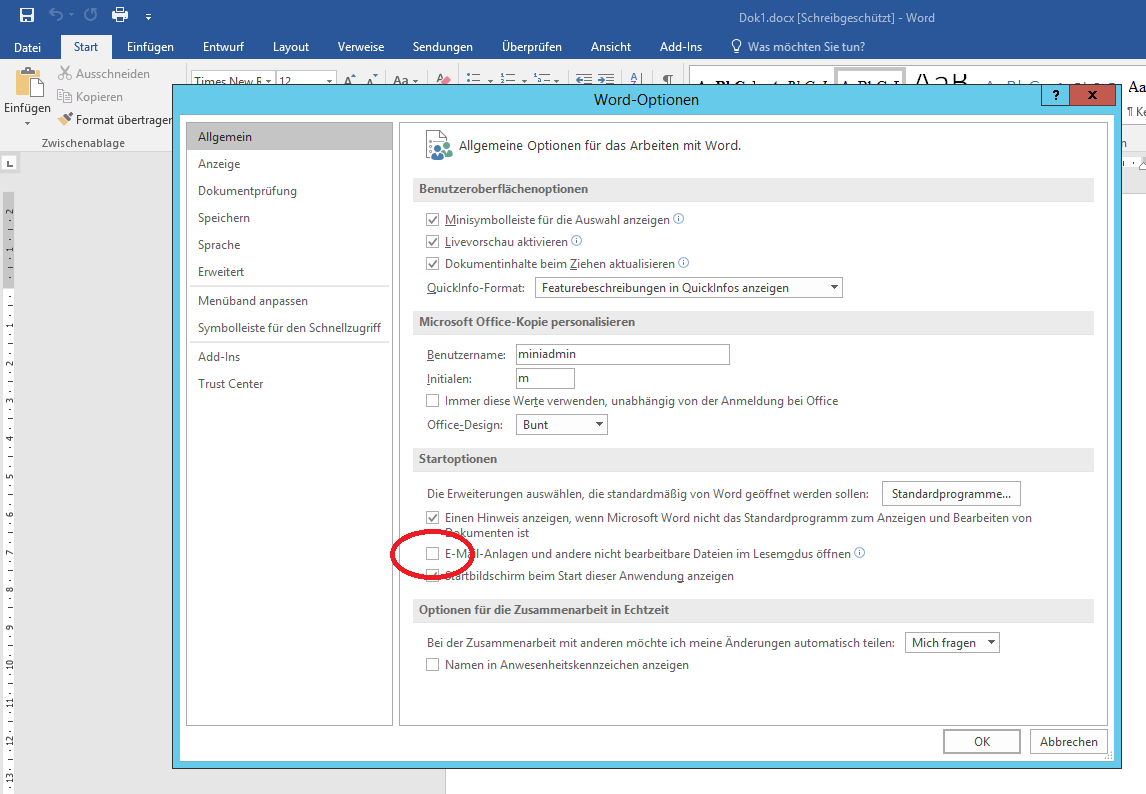 Beim nächsten Start einer schreibgeschützten Docx wird dann Word mit dem Menüband (Ribbon) geöffnet.